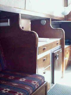 Accommodations - Total sleeping accommodations: 7 in 3 cabins Double berths: Two Single berths: Three Number of cabins/staterooms: 2 aft, main salon and 1 for'd Head #1 : For'd of main cabin Enclosed: Yes Shower: Yes Head #2: None Enclosed: N/A Shower: N/A Dinette: L shape dinette Chart table: Yes Paneling and trim: Mahogany and white Upholstery: Fabric Floor: Unknown Galley and Appliances Location: starboard Sink: Big single H/C: Pres. H/C Ref: Yes, 3 level Stove: LPG 3 burn + oven