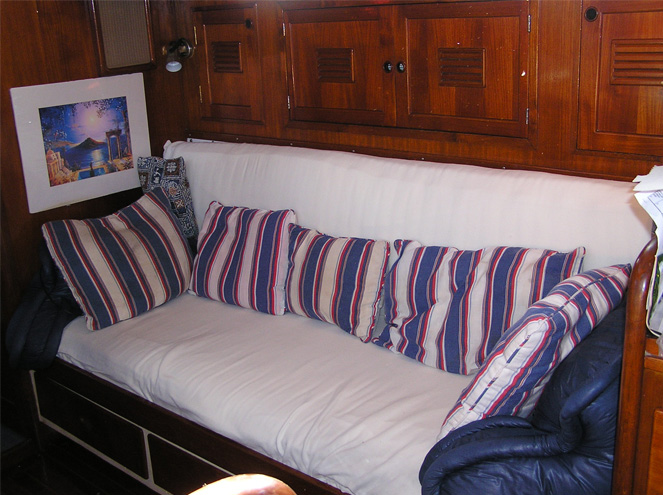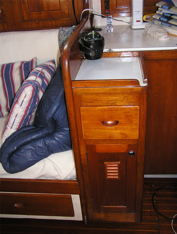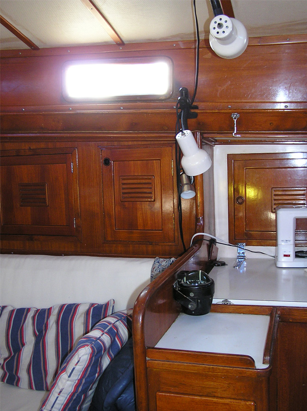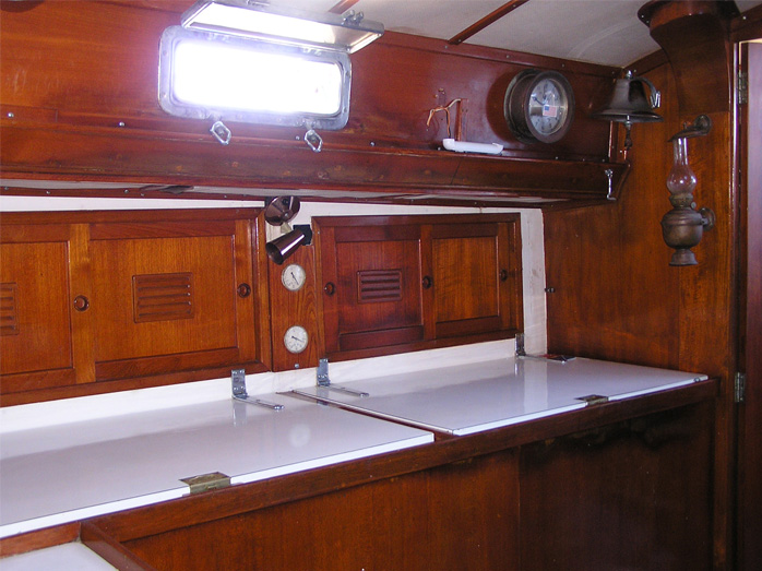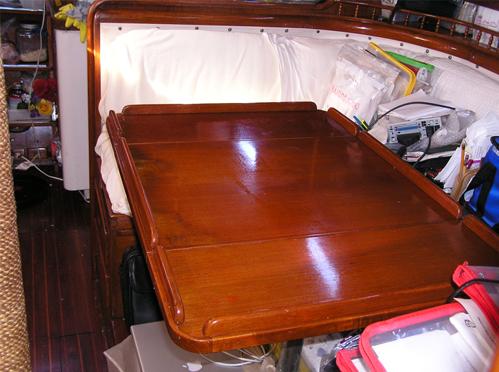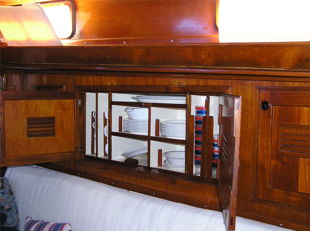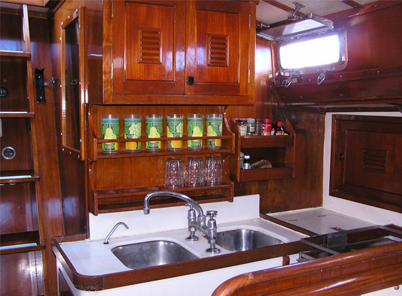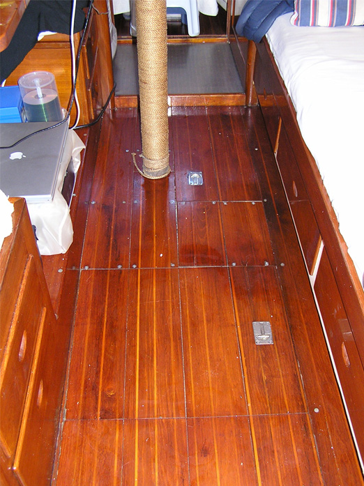 .... Galley table reconfigures to sleep 2................. Engine Compartment under teak flooring in galley