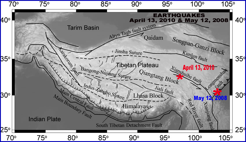 of April 13, 2010 in Qinhai Province and of May 12, 2008, in Shihuan Province. (modified graphic after Liu & Yang 2003).