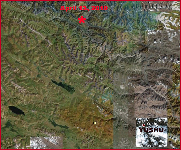 Google Earth image of theYushu Tibetan Autonomous Prefecture in the Qinghai Province region of the Tibetan Plateau, striken by the earthquake of April 13, 2010.