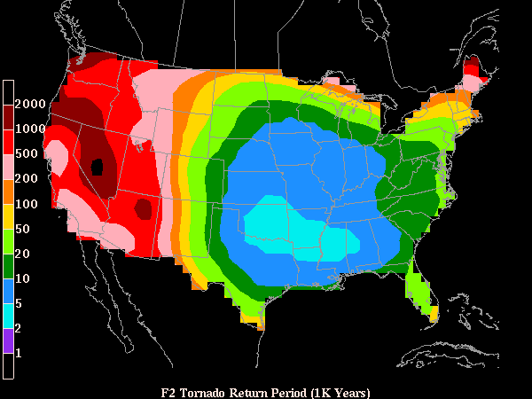 Areas with the greatest incidence of tornadoes with F2 or greater Intensity (After Meyer et al. 2005)