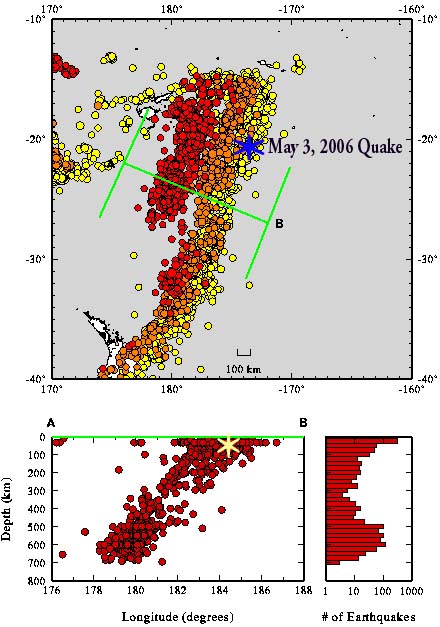 the southern Kermadec-Tonga Arc (modified graphic from www.seismo.berkeley.edu).