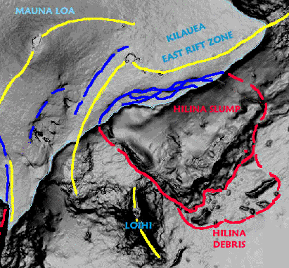 zone of the Kilauea volcano, and the Hilina Slump along which